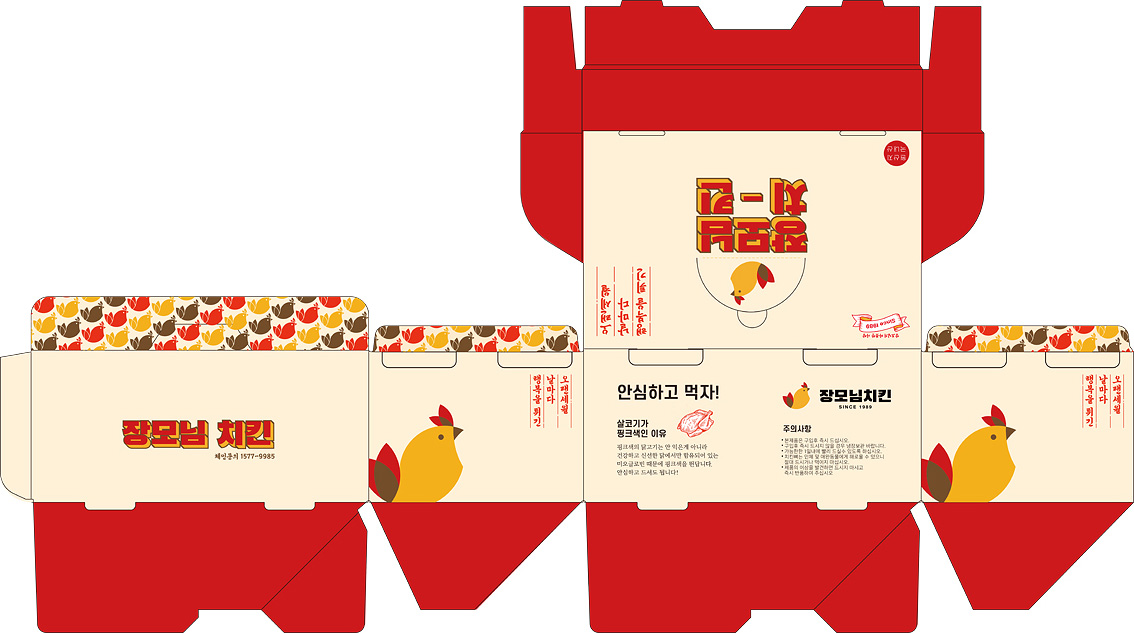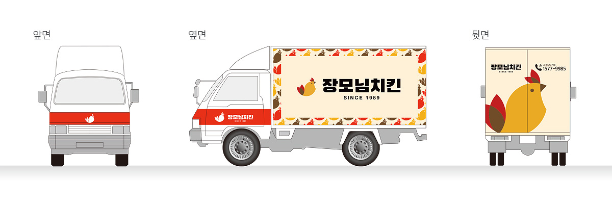 - 컬러노랑은 가족의 따뜻함, 빨강은 치킨의 식감, 갈색은 웰빙푸드를 상징
